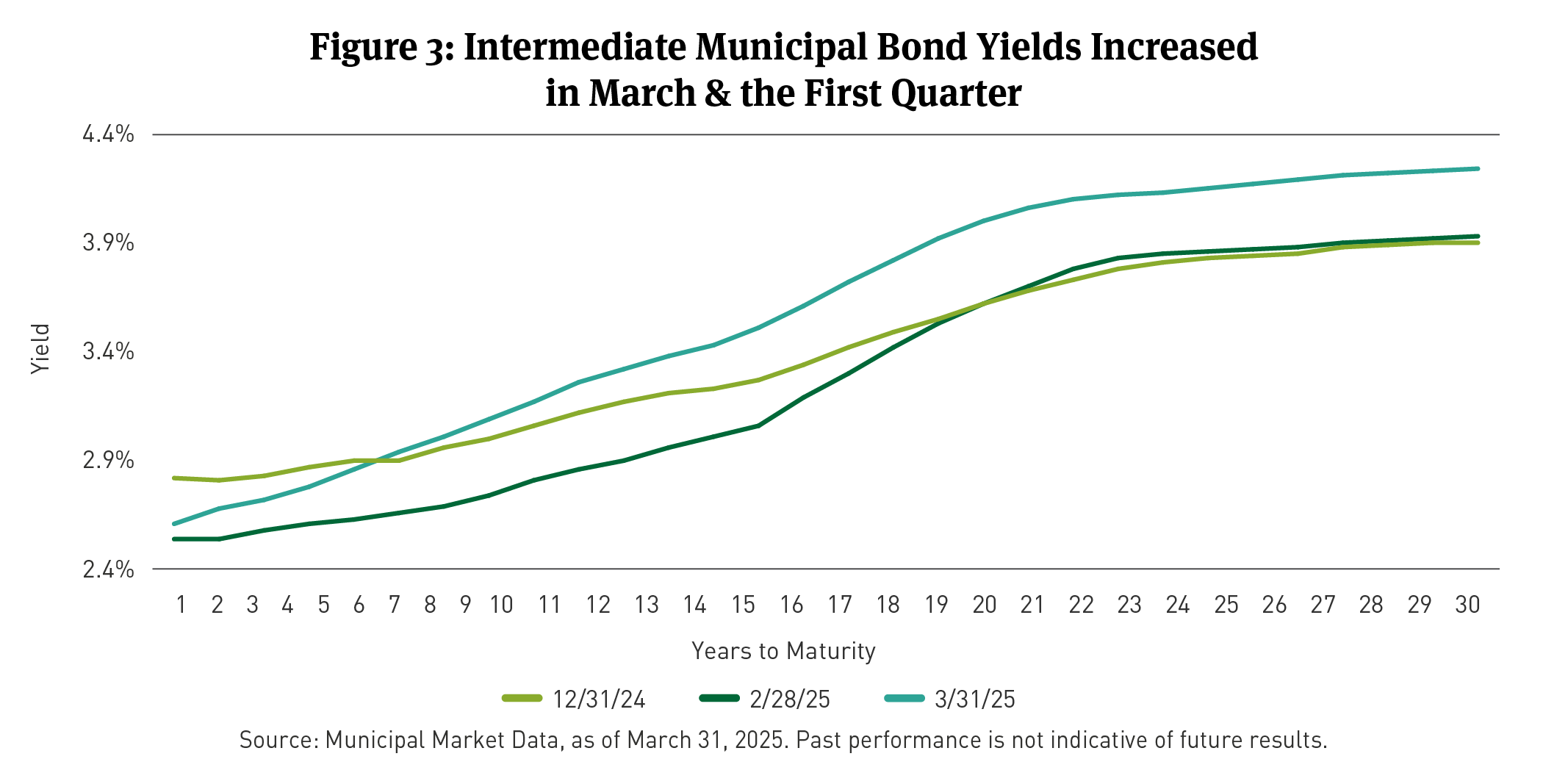 The Bloomberg (BBG) Short/Intermediate (1-10) Municipal Bond Index8 (the Municipal Bond Index) fell 1.16 percent during March and gained 0.48 percent for the quarter ended March 31, 2025.