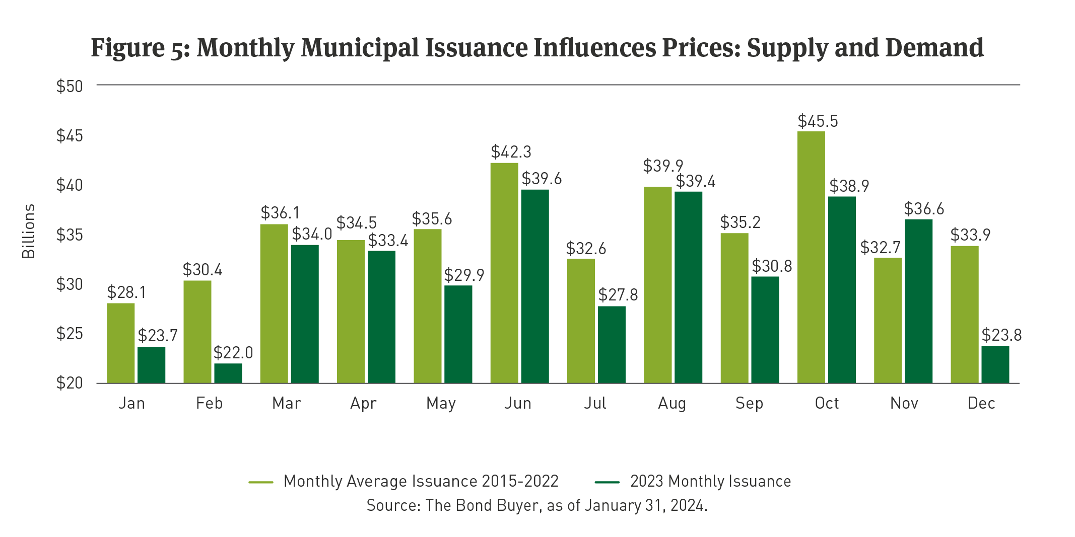 First, municipal issuance has been tepid. Issuers avoided borrowing in the 2010 to 2016 period to repair their balance sheets in the aftermath of the Great Financial Crisis (GFC), based on data reported by The Bond Buyer. (See Figure 5.)